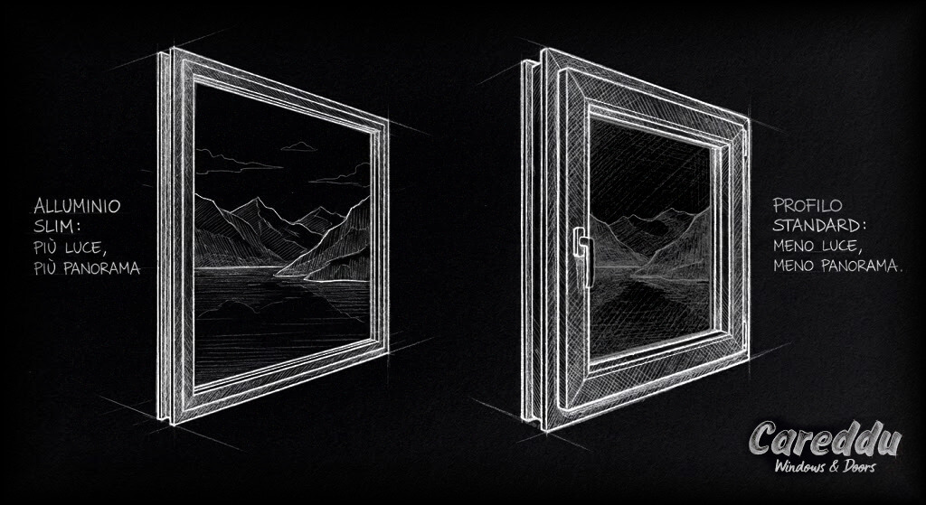 Parliamoci chiaro. I serramenti standard (spesso in PVC o legno tradizionale) hanno un limite fisico: la massa. Per reggere il peso del vetro e garantire isolamento allo stesso tempo, serve spessore. Ci ritroviamo così con telai e montanti centrali che occupano dai 10 ai 14 centimetri.